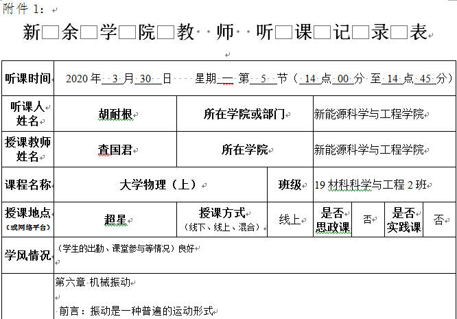 胡耐根教授(督导组组长)督导听课情况