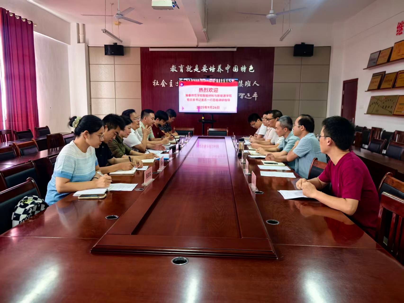 为了进一步深化新能源领域的人才培养与科研合作,拓展学院间交流互鉴渠道,9月26日下午,豫章师范学院智能材料与新能源学院党总支书记龙农一行7人来我院开展新能源领域办学经验交流。学院院长王发辉、副院长陈小会、副院长苏江滨以及教学科研管理科和专业教研室教师代表参加座谈。