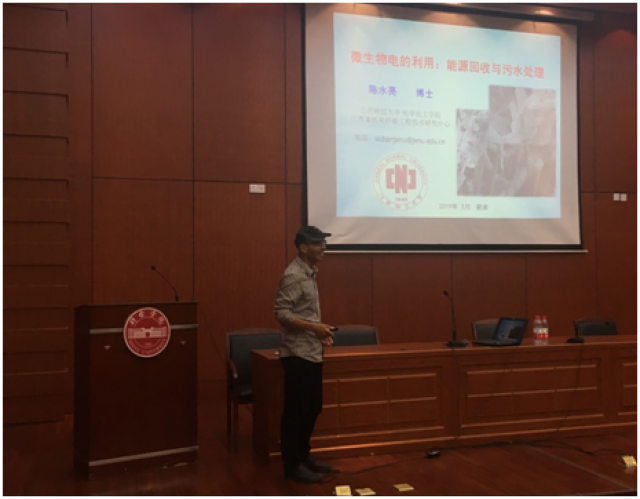 2019年5月14日,应新能源科学与工程学院邀请,江西师范大学化学化工学院博士生导师陈水亮教授在行政楼一楼报告厅作了题为《微生物电的利用:能源回收与污水处理》的学术讲座。讲座由新能源科学与工程学院负责人主持,新能源科学与工程学院130余名师生参加了此次报告。
