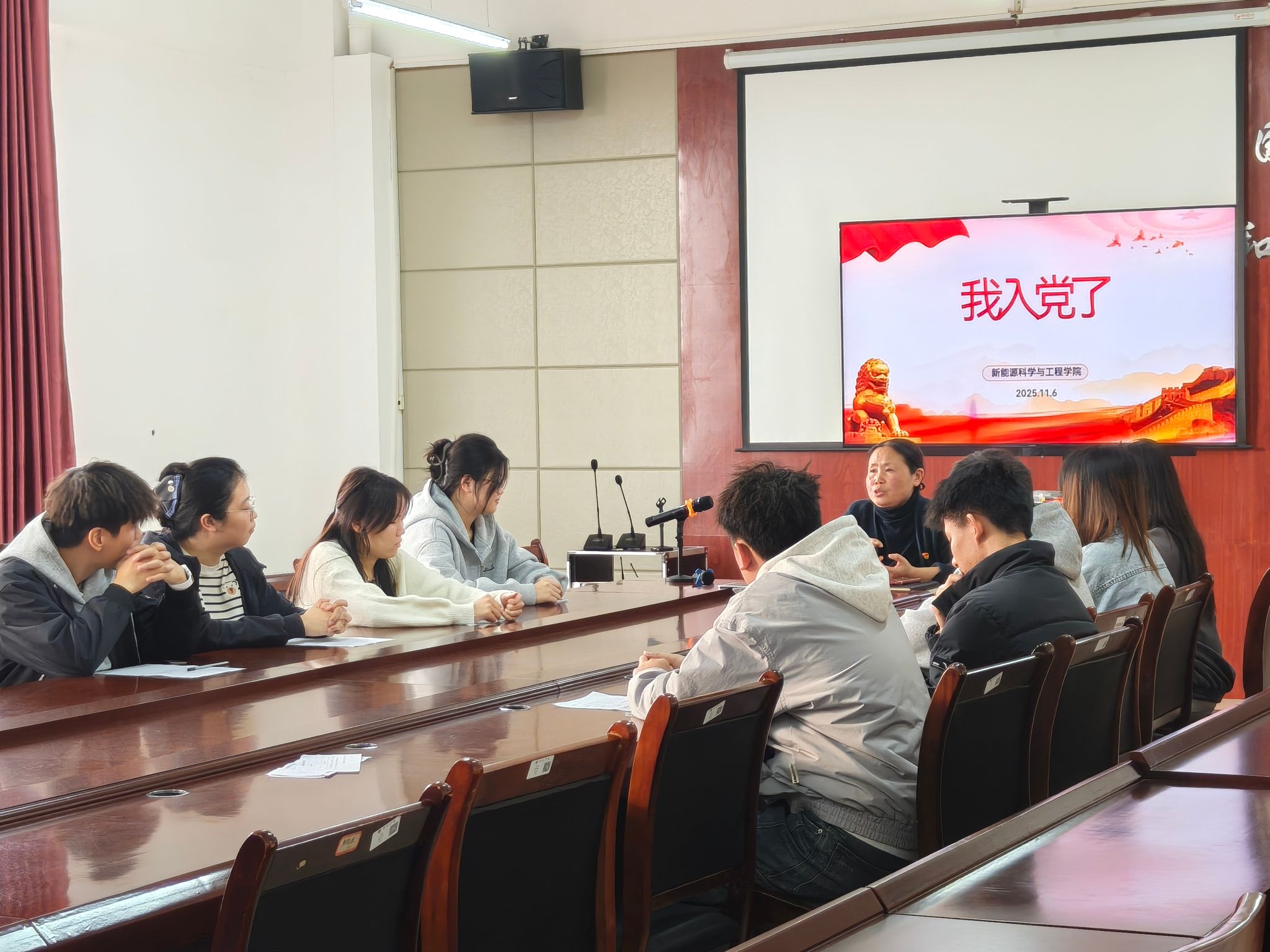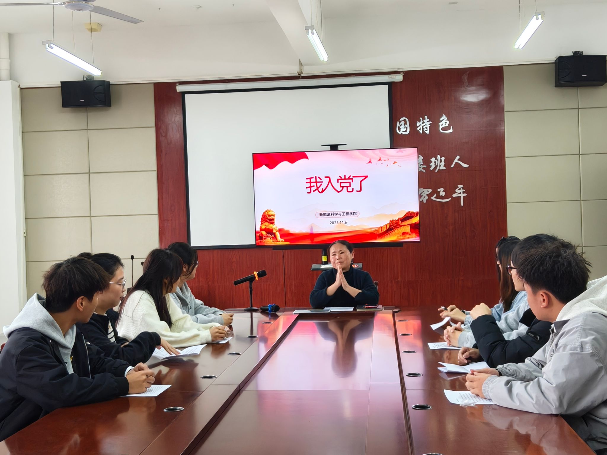为助力新党员筑牢理想信念根基、厚植党性修养底蕴,11月6日,新能源科学与工程学院于学院会议室精心组织开展了新党员专题培训活动。学院党委副书记罗新桦以“我入党了”为主题,从“一生的政治选择”“中国共产党党员是什么样的人”“预备党员如何正确对待预备期”三个关键维度展开深度交流,为新党员们呈上了一堂意义非凡的“入党第一课”。