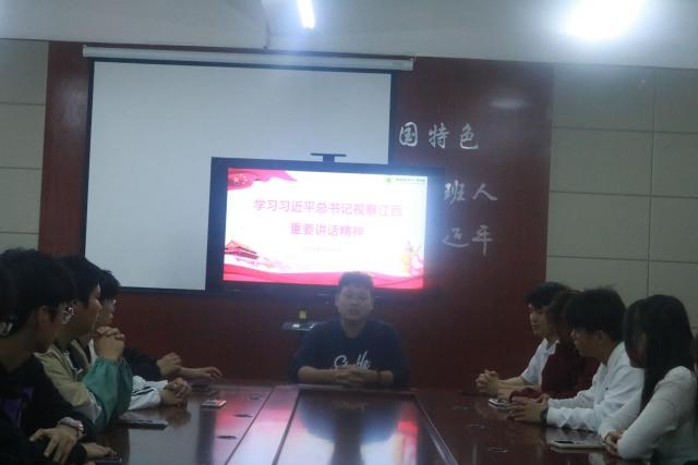 习近平总书记指出,要总结运用第一批主题教育的成功经验,高质量开展第二批主题教育,用井冈山精神、苏区精神、长征精神砥砺党员、干部,教育引导党员、干部坚定理想信念、牢记初心使命、积极开拓进取、勇于担当作为。作为学生会成员,要深入一线,为师生服务,大家交流感想,杨剑、何超、曾丞一同学先后表达了自己的感想。杨剑同学说,通过学习习近平总书记视察江西重要讲话精神,深刻领会到习近平总书记对于江西发展的重视,无论是在人文关怀还是经济发展,以及生态环境的发展,习近平总书记都给予深刻指导和殷切期望。何超同学说,我们一定要确立远大理想,努力为社会做出应有贡献,要做一个勤奋好学、专业过硬之人,更要做一个勤于实践、奉献社会之人。曾丞一同学说,习近平总书记来到江西考察,立足于江西特色和优势,实事求是地进行调研,设身处地为人民的生活着想,用心为人民办事,让我感受到了国家的温度和温暖。