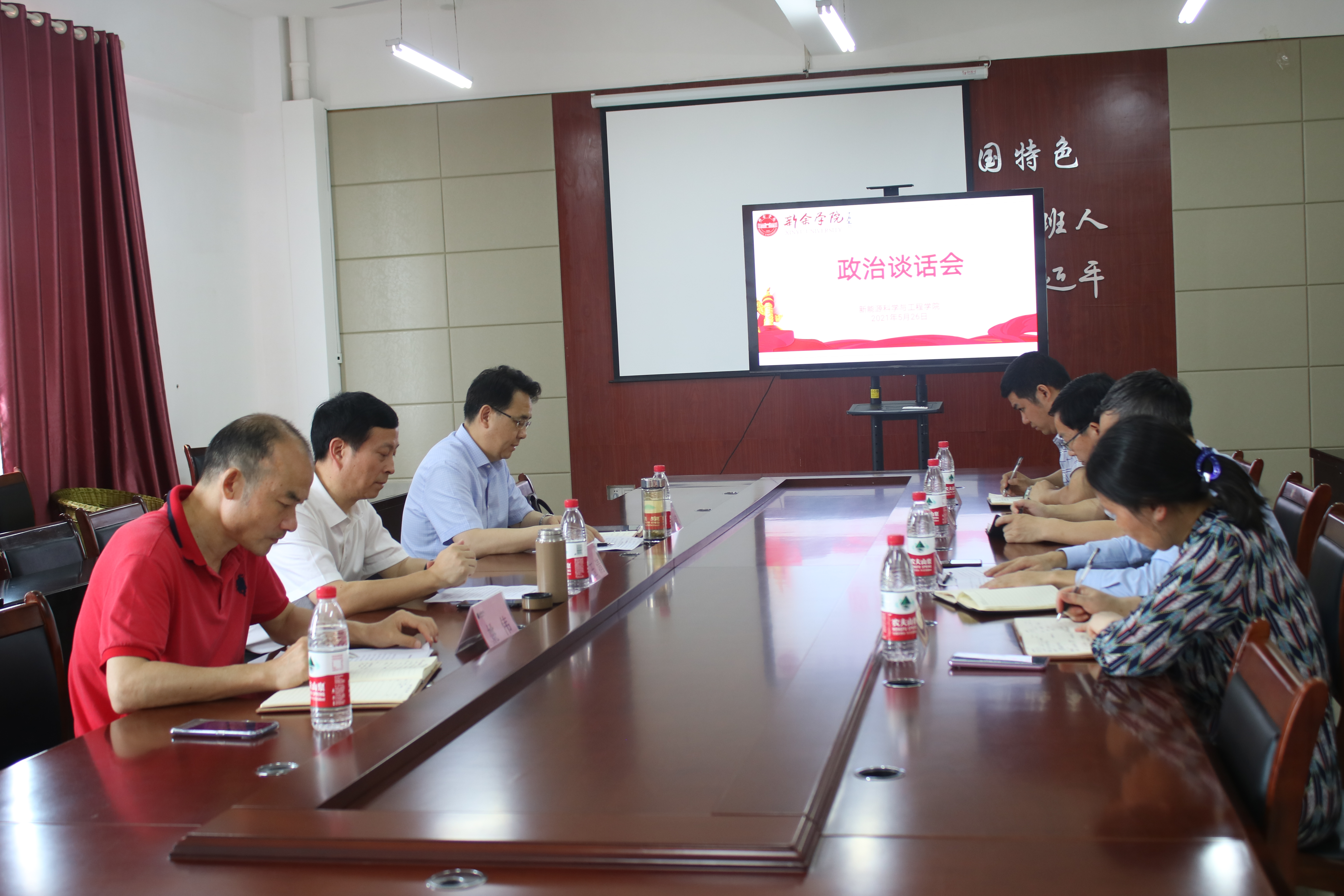 5月26日上午,校长张玉清就政治谈话工作到新能源科学与工程学院开展政治谈话会议,校党委副书记李明斌,校党委委员、组织部长姚伟陪同调研,新能源科学与工程学院党委班子成员参加会议。