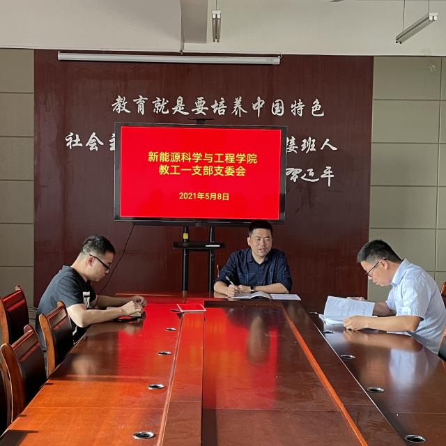 5月8日,新能源科学与工程学院教工第一支部支委在会议室召开5月份支委会,会议由支部书记刘渝龙主持,支委会全体成员参加。