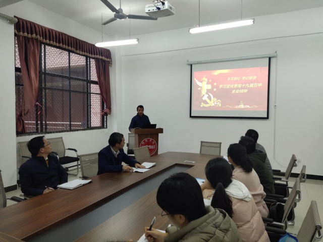 10月24日下午,新能源科学与工程学院教工第二党支部李云明同志为支部党员讲“学习宣传贯彻十九届五中全会精神”主题党课。