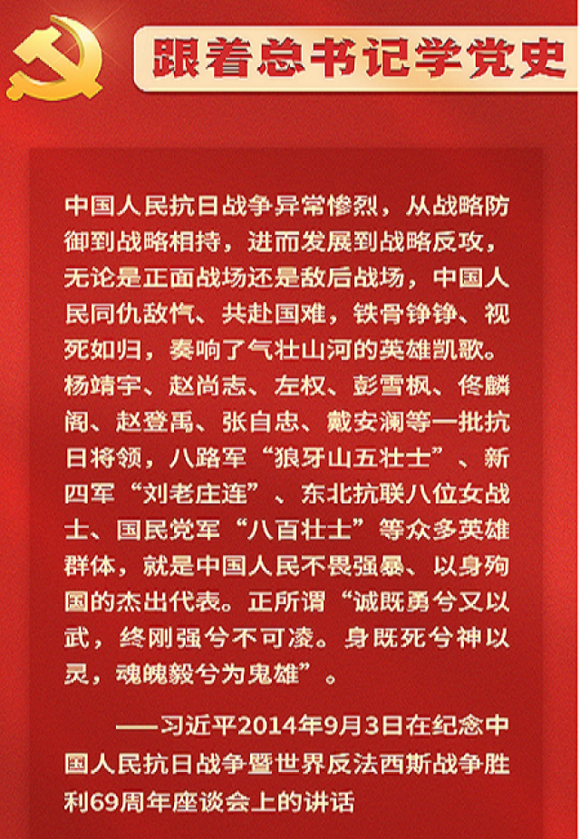 抗日战争时期,在河北省易县狼牙山战斗中英勇抗击日伪军的八路军5位英雄,用生命和鲜血谱写出一首气吞山河的壮丽诗篇。他们是八路军晋察冀军区第一军分区第1团第7连第6班班长、共产党员马宝玉,副班长、共产党员葛振林,战士宋学义、胡德林、胡福才。