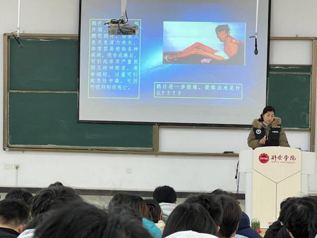 为增强学生安全防范意识,筑牢校园安全防线,3月11日下午,新能源科学与工程学院在理C阶梯教室成功举办“禁毒反诈宣传”主题讲座。本次活动特邀新余市高新公安分局禁毒大队民警刘警官、城东派出所驻新余学院社区民警周警官担任主讲人,共150余名师生参加。