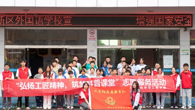 ​​为深入学习贯彻习近平总书记关于青年工作的重要指示,提升团员青年社会责任意识,强化社会实践能力,在“五一”劳动节来临之际,新能源科学与工程学院“小太阳”志愿服务队前往高新区外国语学校开展了“弘扬工匠精神,筑梦科普课堂”志愿服务活动。