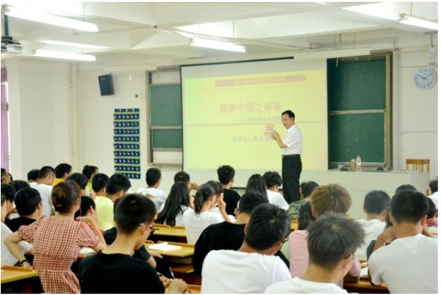 校长张玉清以“健康中国之体育-我的理念与实践”为题,围绕健康教育对大学生的重要性这一主题,通过自身多年学习、教学的理论和实践的经验,从几个方面为我院2019级新生普及健康知识,引导大学生缓解学习、生活压力,塑造健康体质,强化自身使命和担当。他勉励新生们珍惜大学时光,刻苦学习,以求新、求实、求善的校训精神为指引,积极践行打造忠诚校园的倡导,力争成为优秀青年。