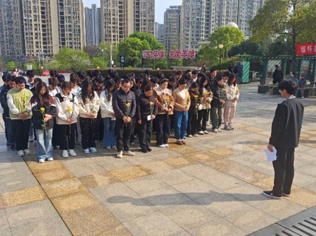 活动在庄严的国歌声中拉开序幕,随后,全体人员向革命英烈默哀致敬,沉痛缅怀他们为国家和人民所做出的巨大牺牲与卓越贡献。默哀毕,全体师生依次上前敬献鲜花,表达对革命英烈的追思与缅怀。