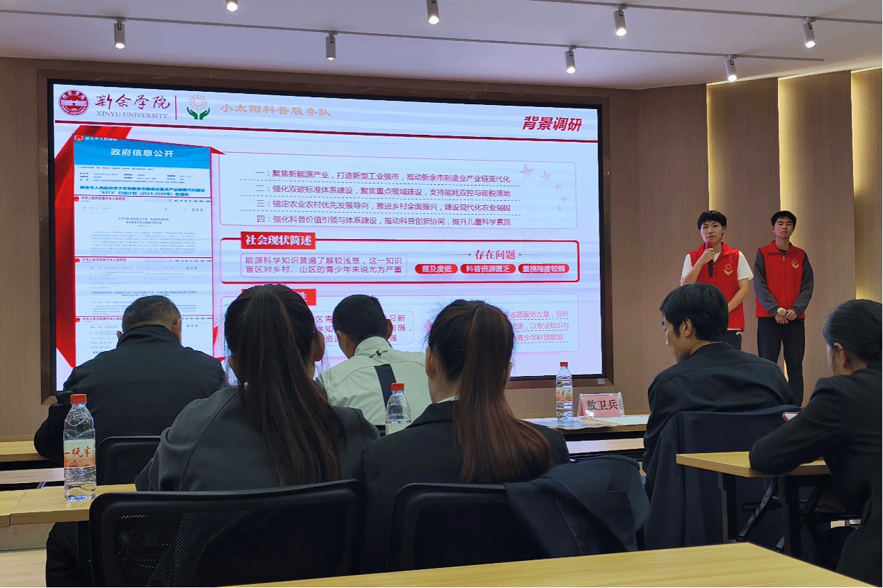 近日,由新余市委宣传部(新余市文明办)主办的2025年度新余市文明实践项目大赛决赛如期举行,由何艳敏、晏小琴老师指导,肖昊、何淇楷等同学参与实施的“源梦童行·向阳而生”——乡村儿童能源科普文明实践项目在全市19个项目中脱颖而出,荣获三等奖,创下我院在社会实践类项目大赛上的最好成绩!