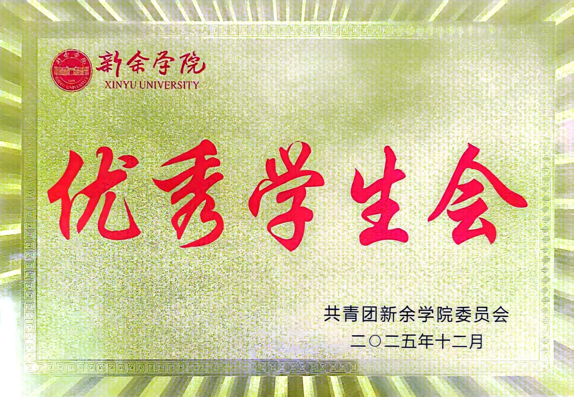 近日,新余学院2025年优秀学生会评选结果公布,我院学生会凭借优良的工作作风和显著的工作成效,成功获评新余学院“优秀学生会”荣誉称号。