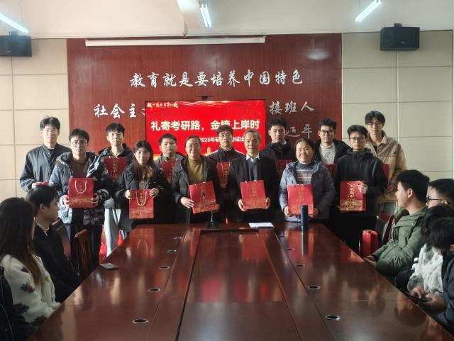 出征仪式上,院党委书记陈莲香代表学院向考研同学表达最诚挚的祝福,希望同学们坚定信心、调好心态,以必胜信念赢得考试胜利,一战成硕!王发辉院长针对考试中的注意事项进行了提醒,表示学院会竭尽所能为同学们提供全方位的服务,祝愿同学们在未来的道路上越走越远,实现自己的人生价值!活动最后,院领导一同为考研学子送上考研大礼包。