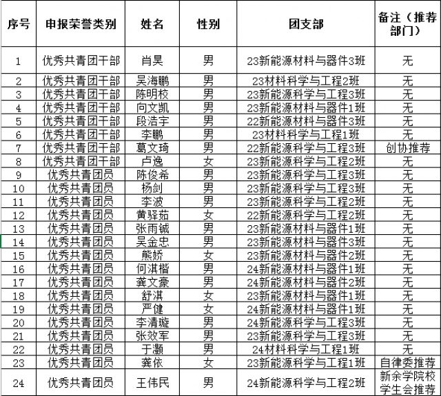 根据《关于开展2024年度新余学院五四红旗团委(团支部)、优秀共青团员、优秀共青团干部评选工作的通知》要求,经学生自主申报、班级团支部评议,院团委审核,拟推荐以下团支部和个人参与校级五四红旗团支部、优秀共青团干部、共青团员评选。