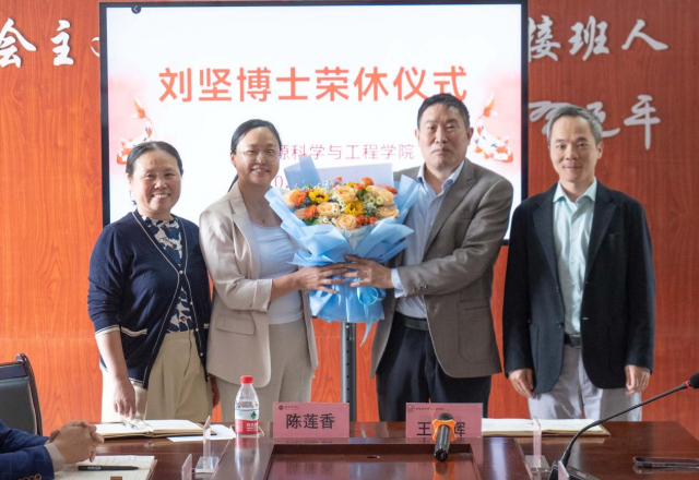 11月5日下午,新能源科学与工程学院在会议室举行2024年教师荣退仪式。全院教职工齐聚一堂,在温馨的气氛中欢送刘坚教授荣退。学院院长王发辉、学院党委书记陈莲香等院领导出席荣休仪式。学院党委副书记罗新桦主持仪式。