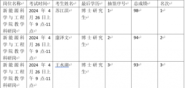 根据《事业单位公开招聘人员暂行规定》相关规定,经现场资格审查、面试等程序,现将新余学院新能源科学与工程学院2024年度博士公开招聘总成绩及拟录用人员名单予以公示。