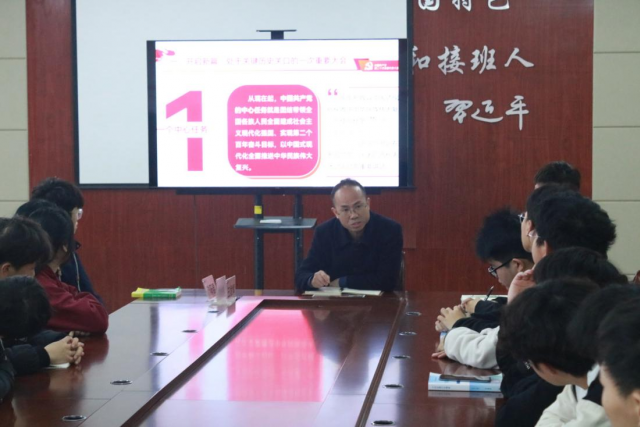 学院负责人王发辉为22器件三班学生深入解读党的二十大会议精神。他以《学习二十大 争做有志青年》为题,从党的二十大会议的重要性、过去五年工作情况、新时代十年的伟大变革及中国青年的责任担当等方面进行宣讲,他结合自身工作感悟和学习体会勉励同学们努力学好专业知识,积极参加社会实践,提升自身综合能力,以实现中华民族伟大复兴为己任不断增强志气、骨气、底气。