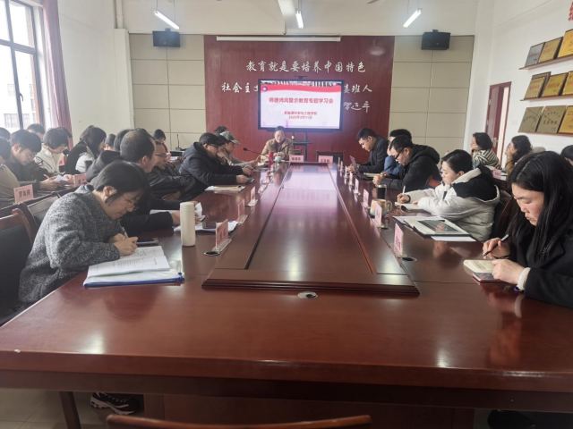 会议强调全体教职工要以案为鉴知敬畏,筑牢思想防线,坚守教育初心;牢固树立底线意识,自觉践行良好师德,时刻铭记教师的使命与责任;践行师德规范,在教育教学过程中做到以德立身、以德立学、以德施教、以德育德,努力成为“四有”好老师。
