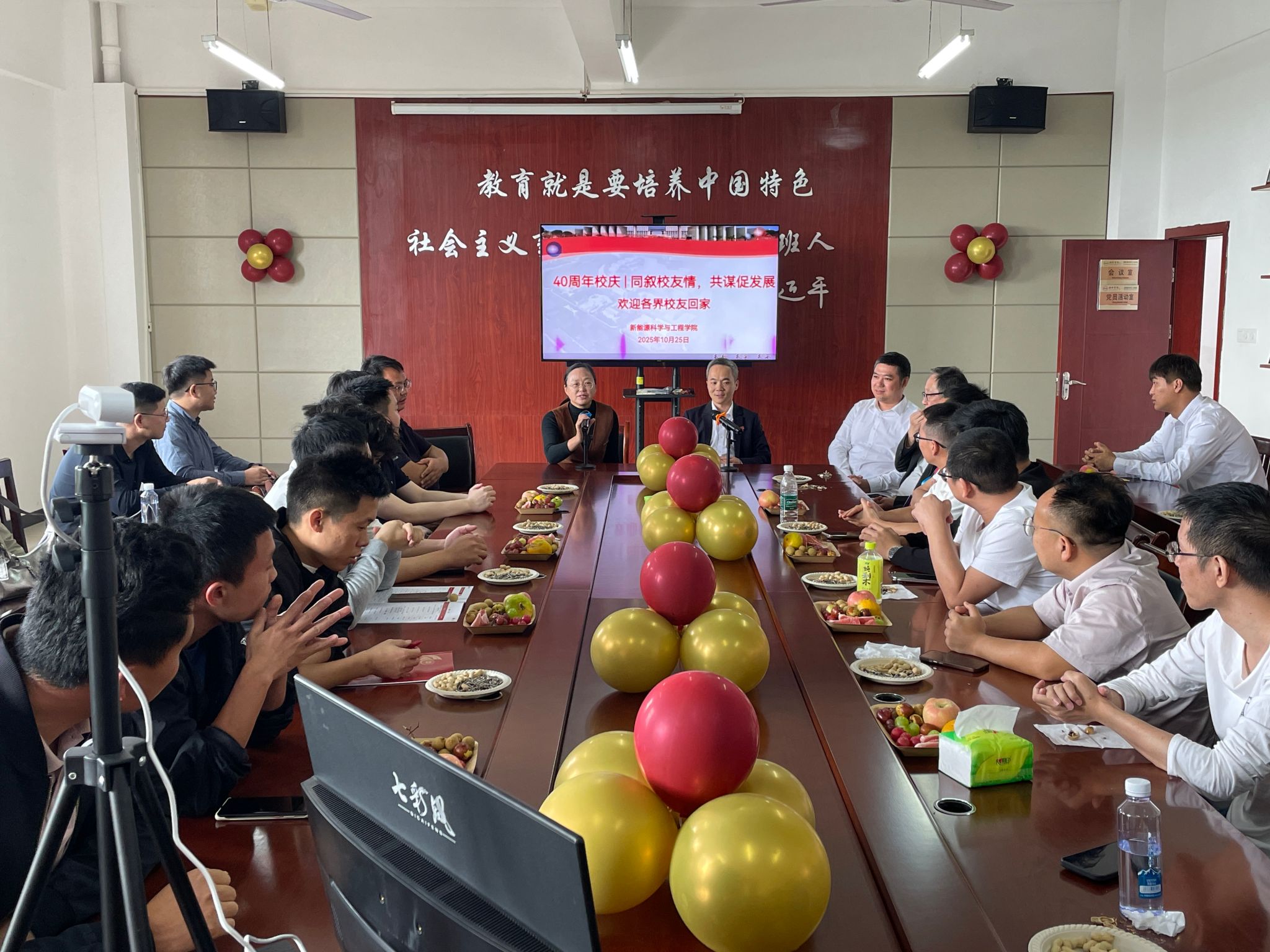 四秩芳华,薪火相传。在学校迎来 40 周年校庆的喜庆时刻,为凝聚校友力量,共绘发展蓝图,10月25日下午,新能源科学与工程学院在会议室隆重举行“同叙校友情,共谋促发展”主题校友座谈会。来自各行各业的校友代表欢聚一堂,与学院领导、师生代表畅叙同窗情谊,共忆青春岁月,共谋学院高质量发展新篇章。